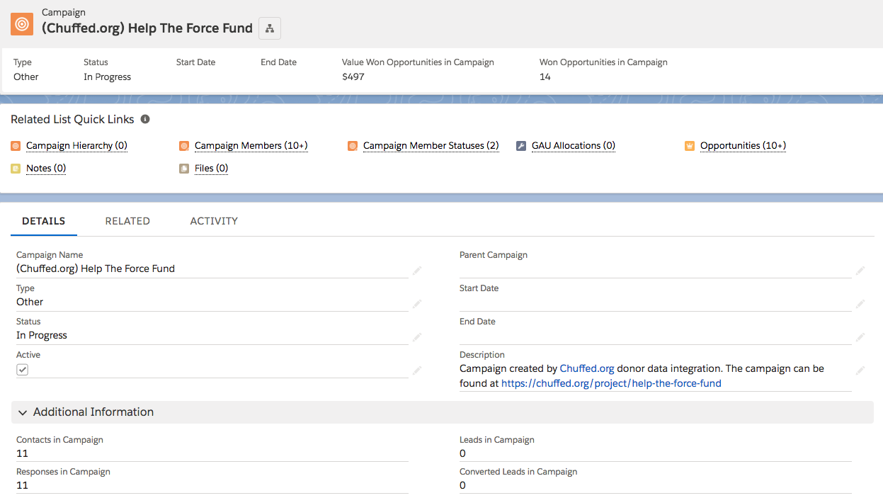 Create a Salesforce campaign from your Chuffed.org campaign