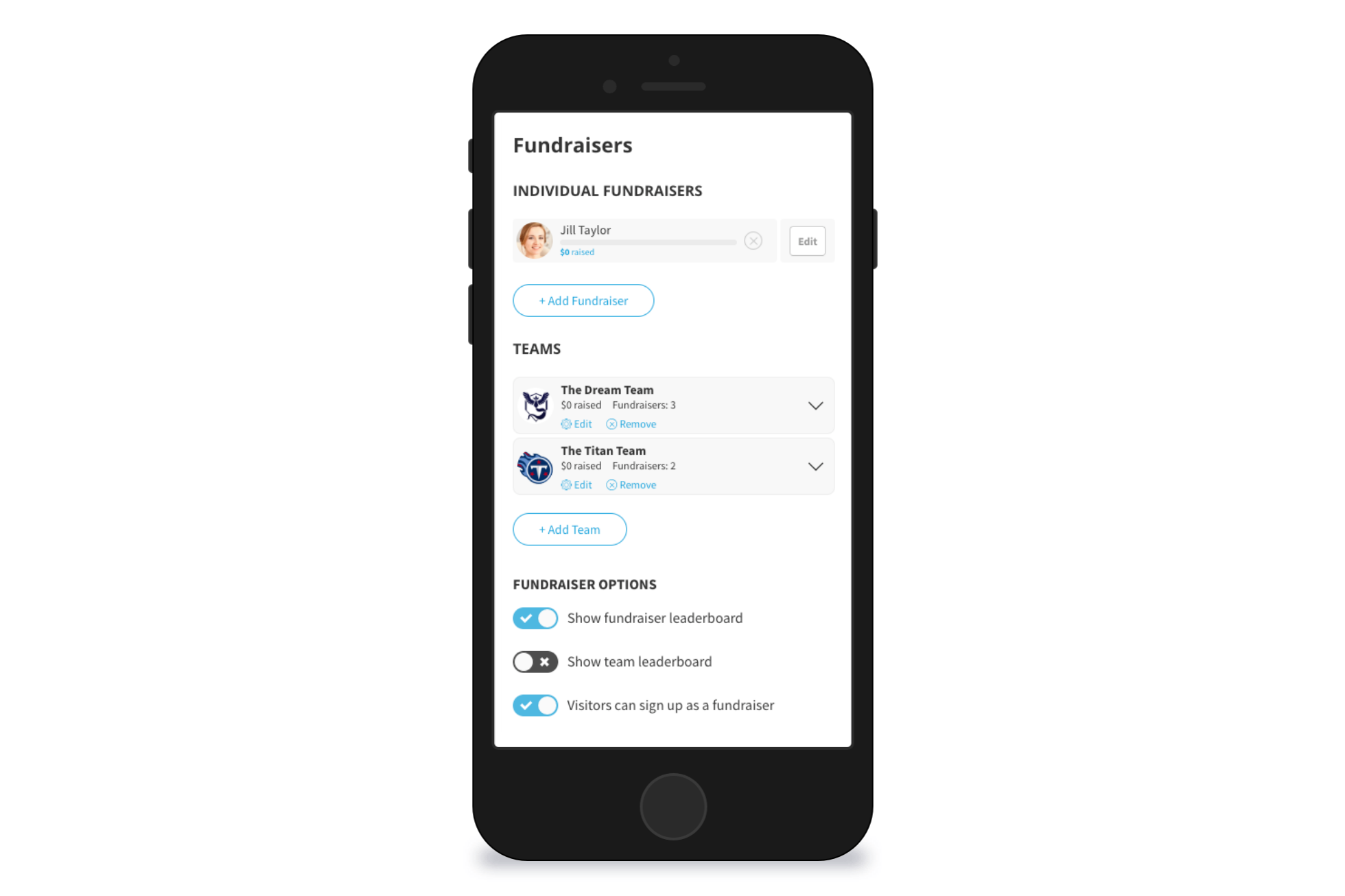 Create Fundraiser Pages & Teams